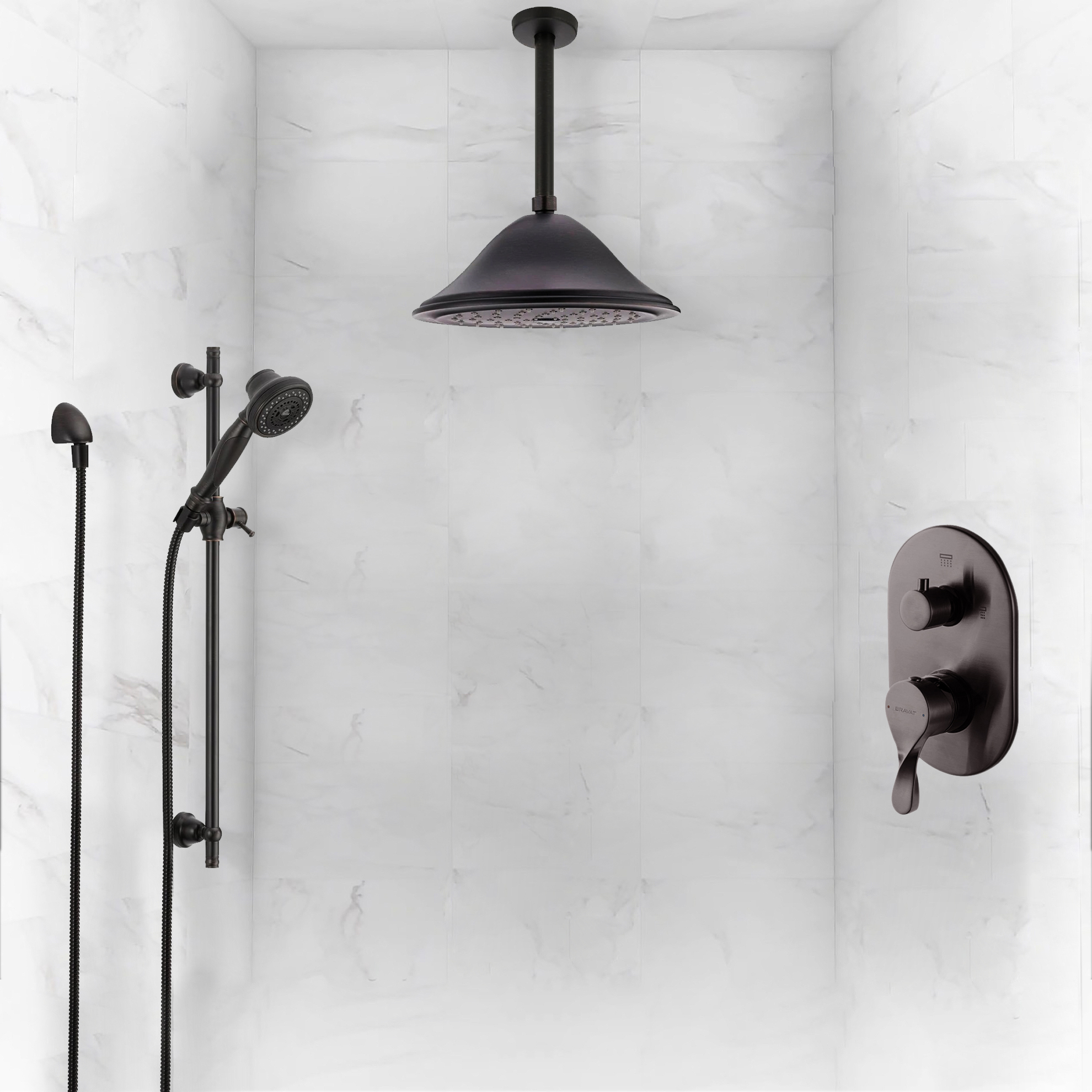 Bravat Ceiling Mounted Round Shower Set With Valve Mixer 3-Way Concealed In Oil Rubbed Bronze Features: