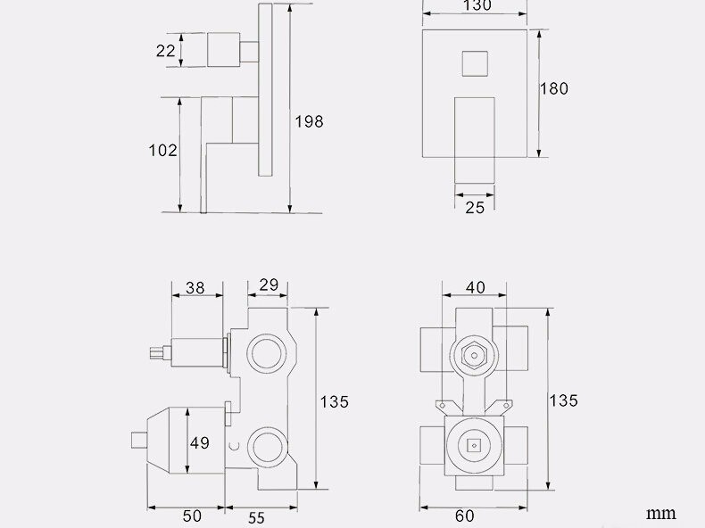 - With 1 diverter to change water outlet from one into another one, 3 outlets connected.
