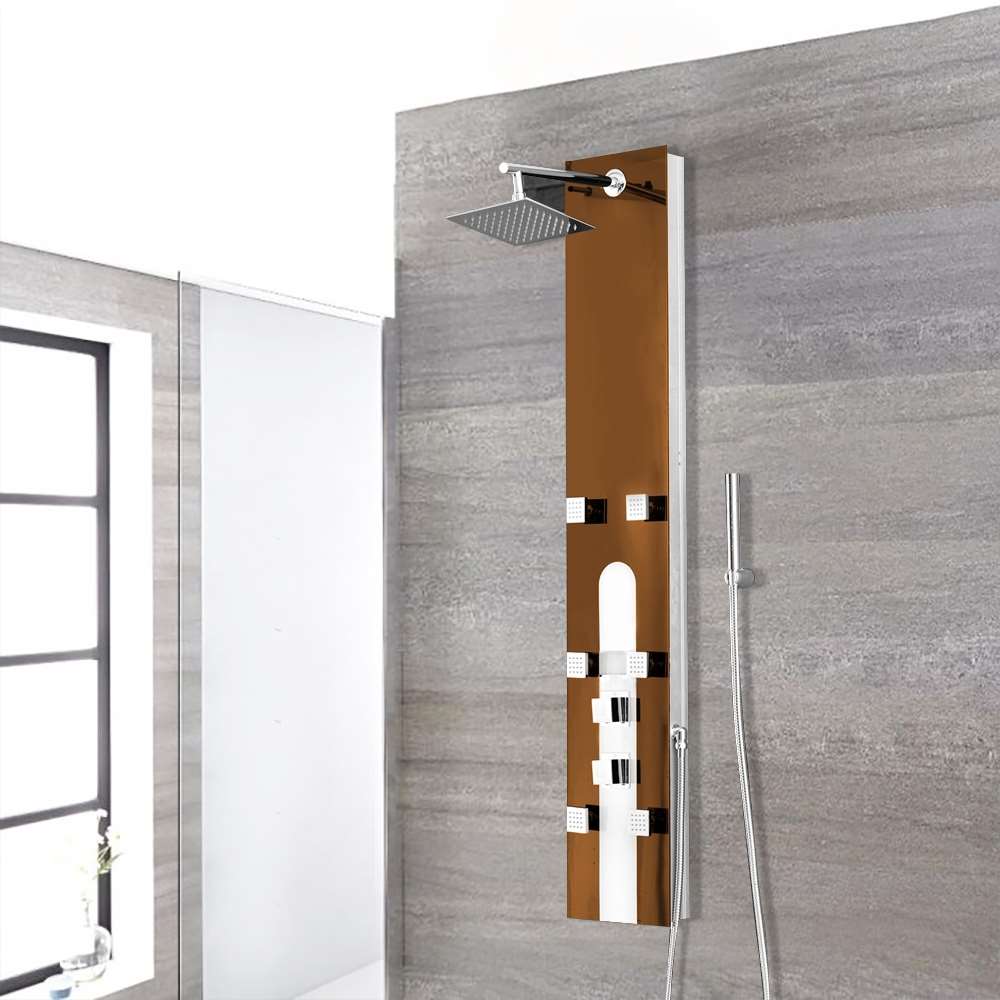 The Vicenza Shower Panel System is a Oil Rubbed Bronze Shower Panel that comes with a variety of features like Rainfall Shower Head, Body Shower Jets & a Hand shower. The Vicenza Shower Panel System is made of Stainless Steel & is wall mounted which comes with all the accessories requires for installation.