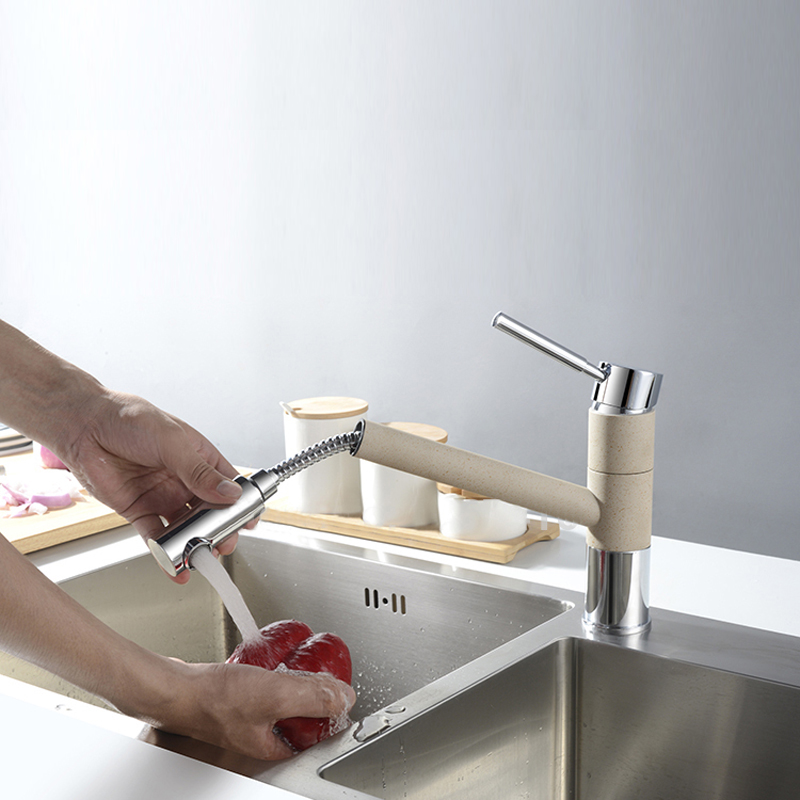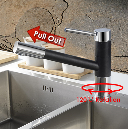 Imola Kitchen Faucet is Countertop with a single handle. This contemporary styled faucet is made of solid brass material with an elegant chrome polished finish. Water temperature is adjustable.