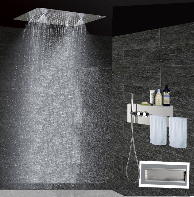 When it comes to bathroom accessories it is not easy to choose separate items that fit together well, so purchasing a bathroom set is the best option. Our Lenox modern recessed thermostatic shower set offers everything you dreamed about when it comes to the shower enclosure: rainfall and mist shower, two handles, a hand held shower and a shelf with shower bar. The Finish is polished stainless steel, perfect for fitting any contemporary bathroom. The faucet is concealed, wall mounted, the valve core material is ceramic for long lasting performance. It is delivered complete with accessories and installation instructions.