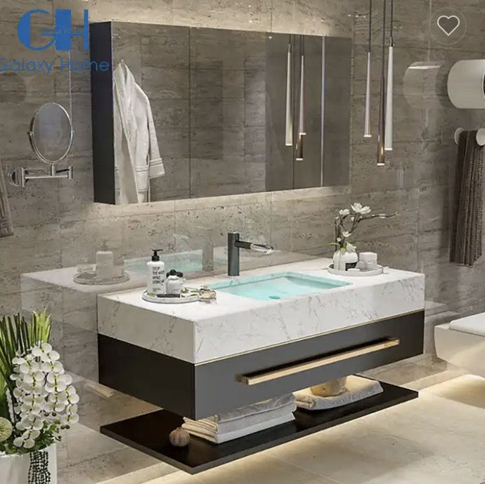 The Fontana Modern Smart Gray Mirror With Under Counter Basin Sink adds both style and practicality to any bathroom setting. This ensemble includes a vanity cabinet constructed from high-quality wood, ensuring robustness and a timeless aesthetic. Impressively, there has been a substantial 200% improvement in grades. The countertop boasts an 8cm thickening, employing a precise German 45-degree splicing technique. The counter itself is 8cm thick and features sides that are generously broad at 55 cm. The framework is characterized by its solid and dependable nature. Notably, the solid wood cabinet offers a 30% increase in storage space, featuring an elongated, larger drawer and a more robustly designed storage board at the cabinet's base. The Fontana Modern Smart Gray Mirror With Under Counter Basin Sink metal handle's length has been enhanced for improved ergonomics. Crafted from 3A-grade large-capacity ceramic pots, these pots undergo high-temperature firing at 1300 degrees, preserving their brilliance for an extended period. The cabinet's stability, safety, and reliability are bolstered by the introduction of an additional double-layer structure breaker. Ideal for busy households or shared bathrooms, the double sink design ensures comfortable use by multiple individuals simultaneously. The seamless integration of sinks and countertops imparts a sleek and contemporary touch. Notably, the innovative defogging mirror stands out as a prominent feature of this vanity cabinet ensemble. Featuring cutting-edge technology, this mirror remains clear even in steamy bathroom environments, eliminating the need for manual condensation wiping after hot showers or baths, thereby saving time. Included within the Fontana Modern Smart Gray Mirror With Under Counter Basin Sink ensemble is a wood vanity cabinet. This cabinet accommodates bathroom essentials such as towels, toiletries, and cleaning supplies with ample capacity. To facilitate easy access and organization, the cabinet features sturdy handles, cabinets, and drawers. Overall, the appearance of this vanity cabinet set is both sleek and modern, rendering it a versatile choice that complements a range of bathroom design themes, whether modern, traditional, or transitional. The Fontana Modern Smart Gray Mirror With Under Counter Basin Sink is guaranteed to enhance your bathroom's aesthetics and functionality, irrespective of the chosen design theme.