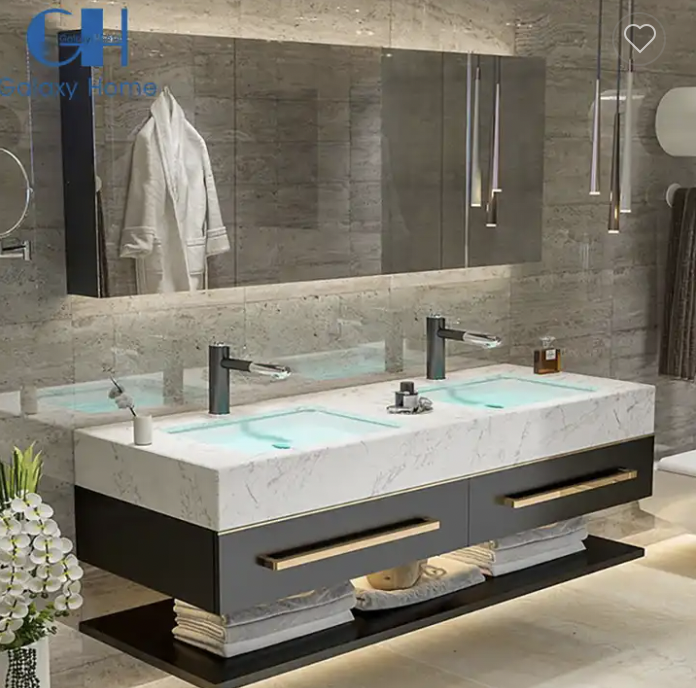 The Fontana Wall Mounted Smart Vanity Mirror Cabinet Set With Undercounter Basin Sink is a blend of style and functionality that makes a significant addition to any bathroom. This ensemble includes a vanity cabinet crafted from premium-quality wood, ensuring both durability and a timeless aesthetic. Remarkably, there has been an impressive 200% enhancement in terms of quality. The countertop boasts an 8cm thickness, crafted using a precise German 45-degree splicing technique. The counter itself is also 8cm thick, with sides spanning a generous 55 cm in breadth. The framework is robust and dependable. The solid wood cabinet offers 30% more space, featuring an elongated, larger drawer and a more substantial storage board at the cabinet's base. The metal handle's length has been extended for improved functionality. The Fontana Wall Mounted Smart Vanity Mirror Cabinet Set With Undercounter Basin Sink large-capacity 3A-grade ceramic pots are fired at a high temperature of 1300 degrees, ensuring their brilliance is preserved for an extended period. The addition of a double-layer structure breaker bolsters the cabinet's stability, safety, and reliability. Designed for households with busy lifestyles or shared bathrooms, the double sink design offers comfortable use for multiple individuals at once. The seamless integration of sinks and countertops imparts a sleek and contemporary appearance. A standout feature of this vanity cabinet ensemble is the intelligent defogging mirror. Equipped with cutting-edge technology, this mirror remains clear even in steamy bathroom environments, eliminating the need for manual condensation wiping after hot showers or baths, thereby saving time. Included within the Fontana bathroom furniture ensemble is a wood vanity cabinet. This Fontana Wall Mounted Smart Vanity Mirror Cabinet Set With Undercounter Basin Sink provides ample storage capacity for bathroom essentials such as towels, toiletries, and cleaning supplies. Cabinets, drawers, and sturdy handles facilitate easy access and organization. The overall appearance of this vanity cabinet set is sleek and modern, making it a versatile choice that complements various bathroom design themes, whether modern, traditional, or transitional. The Fontana Wall Mounted Smart Vanity Mirror Cabinet Set With Undercounter Basin Sink is certain to enhance your bathroom's aesthetics and functionality, regardless of whether your bathroom boasts a modern, traditional, or transitional design theme.