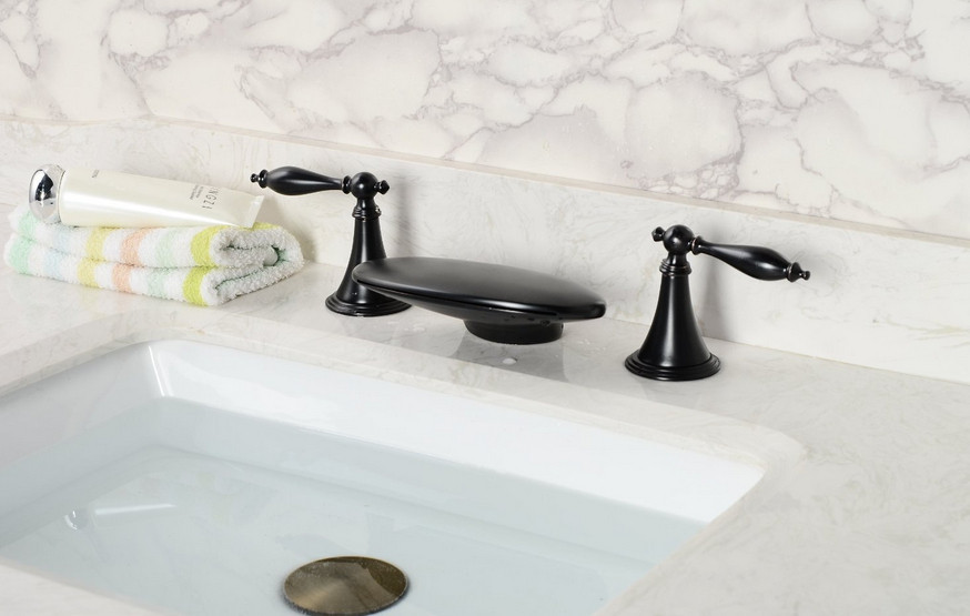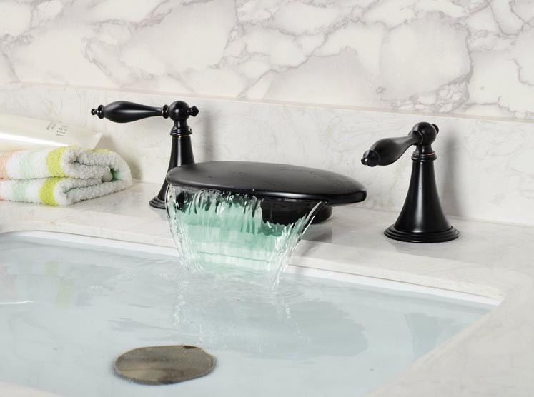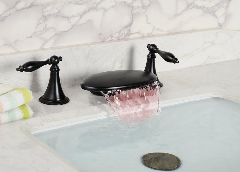 Dark Oil Rubbed Bronze Round Dual Handle LED Brass Sink Faucet