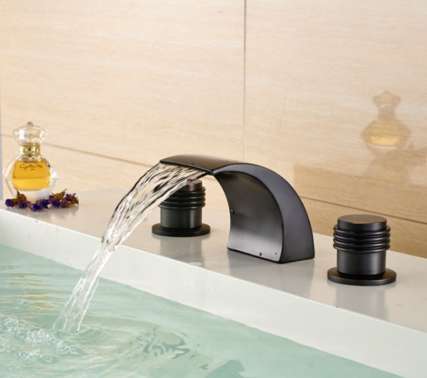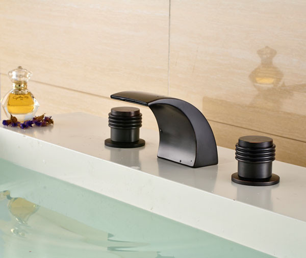 Reno Oil Rubbed Bronze Waterfall Deck Mount Three Hole Brass Body Bathroom Basin Sink Faucet